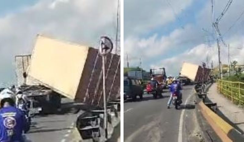 Um vídeo compartilhado em aplicativos de mensagens, mostra a carreta tombada e faz um alerta de que o trânsito no local está interditado.