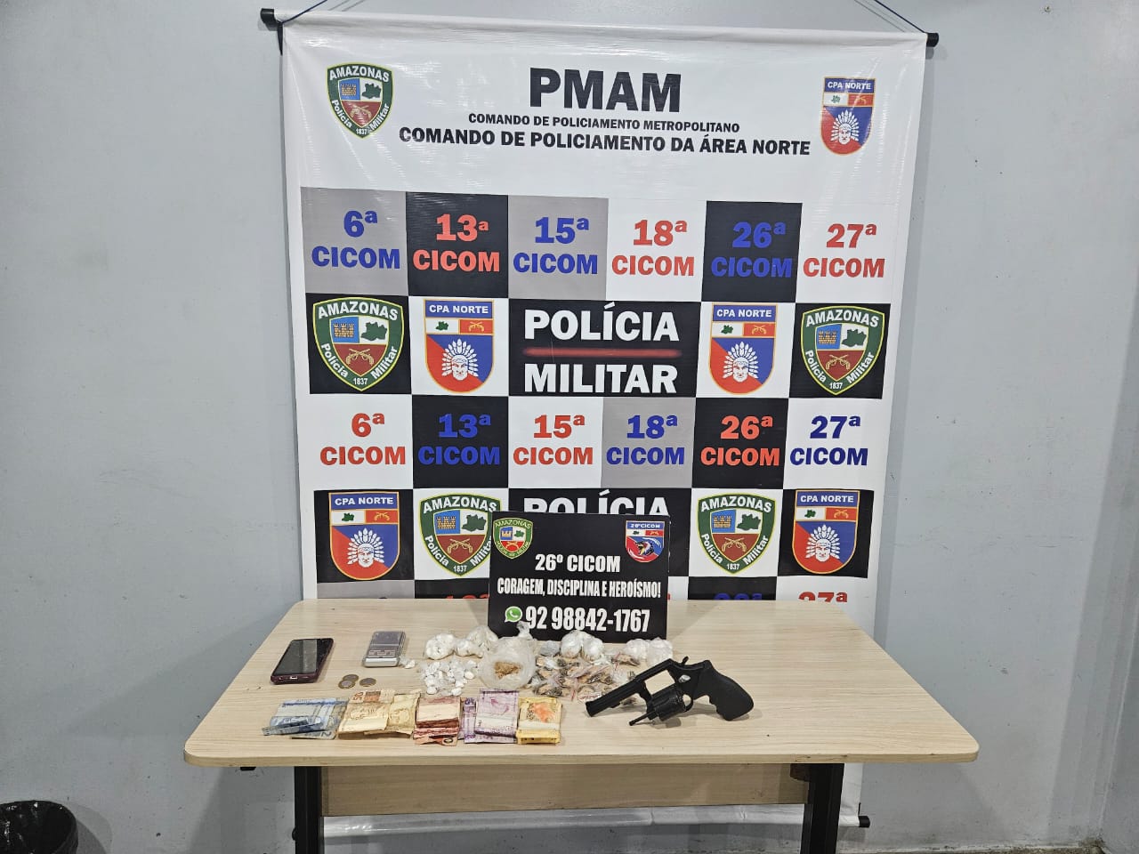 A Polícia Militar do Amazonas (PMAM), por meio da 26ª Companhia Interativa Comunitária (Cicom), prendeu, na quarta-feira (11/06), um homem, de 20 anos, e apreendeu mais de 200 trouxinhas de drogas e arma de fogo. A ação aconteceu no bairro Santa Etelvina, zona norte de Manaus.