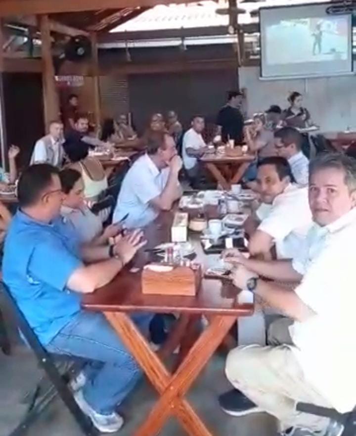 Por outro lado, Ramos levanta da cadeira e começa gravar a pessoa chamando-o de “bolsominium”.