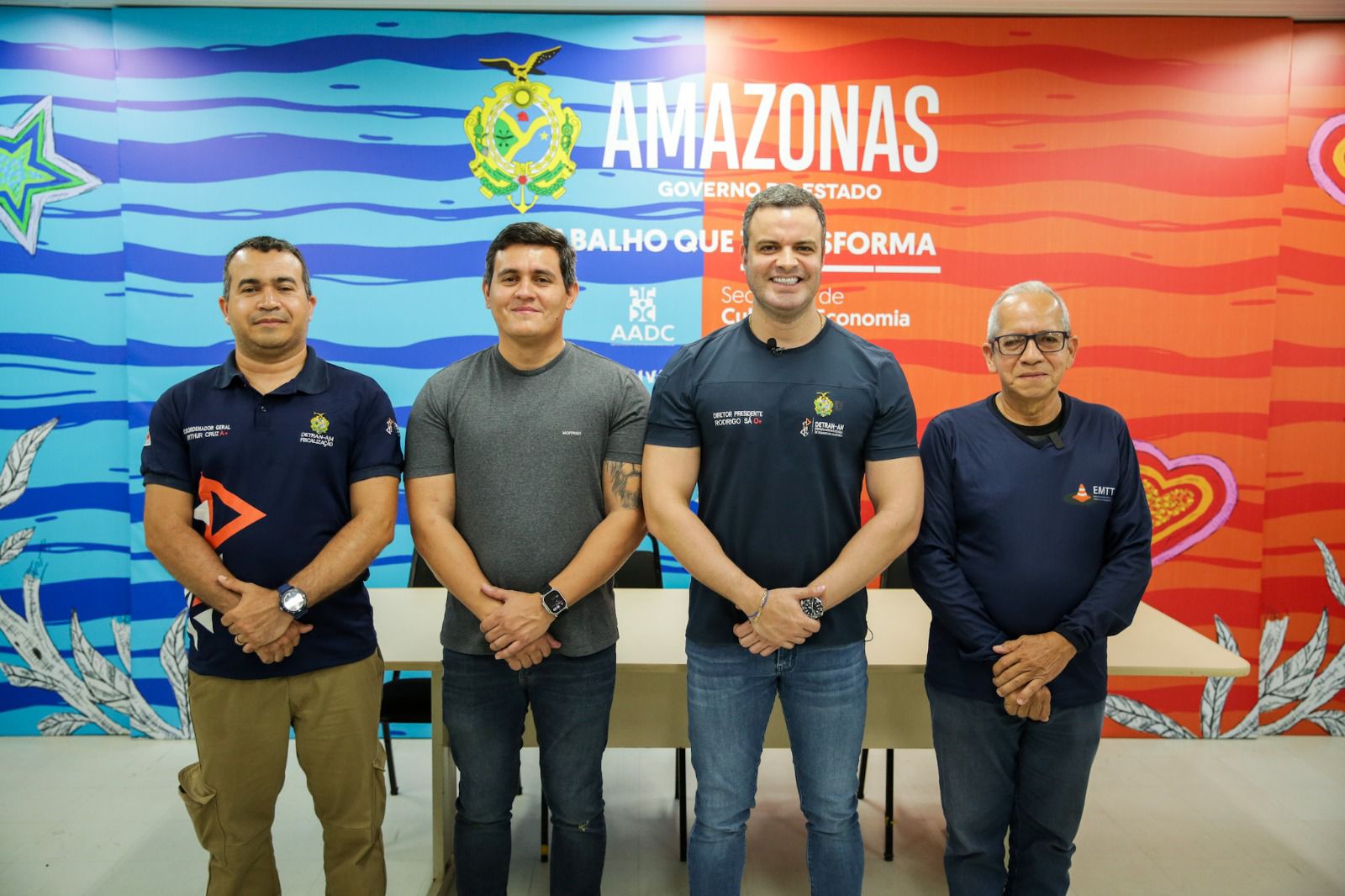 Sonoras: Diretor-presidente do Detran-AM, Rodrigo de Sá; coordenador de Fiscalização, Arthur Cruz e diretor-presidente do EMTT Parintins, Ricardo Cohen.